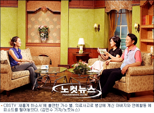 18일 CBSTV ''새롭게 하소서''(진행 : 최일도·오미희, 위성 412·각 지역 케이블)에 출연한(녹화) 별은 "의료사고로 4년째 누워계시는 아버지께 TV방송을 통해 한번이라도 더 제 얼굴을 보여드리고 노래를 들려드리면 병세 호전에 도움이 되지 않을까"하는 마음으로 힘을 내고 있다고 밝혔다.