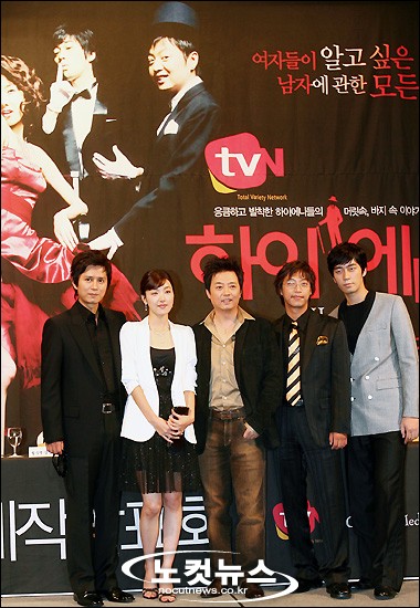 19일 오후 서울 강남 임페리얼 펠리스 호텔에서 열린 CJ 미디어의 오락 전문 채널 tvN 개국 기념 드라마 ''하이에나'' (연출 조수원 · 극본 이성은) 제작발표회에서 드라마의 주역들이 나란히 포즈를 취하고 있다. (왼쪽부터) 김민종, 소이현, 윤다훈, 오만석, 신성록.