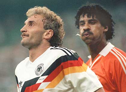 당시에는 루드 굴리트, 프랑크 레이캬르트, 마르코 반바스텐이라는 3각체재로 경기를 리드해 나가 로타 마테우스와 루디 푈러, 위르겐 클린스만이 활약하는 독일팀을 위축시켰다.
