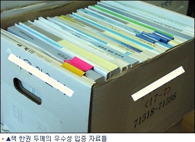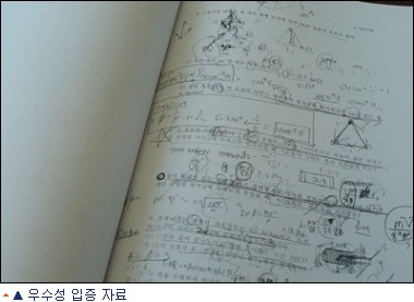 이 자료는 고등학교 시절 받았던 각종 수상실적, 봉사활동 증명서, 연구 활동 리스트, 논문 등이 책 한권 분량으로 아주 상세하게 서술돼 있다. 실제 우수성입증자료를 들춰보면 수업시간에 풀었던 수학문제 노트까지 그대로 복사해 포함돼 있다.