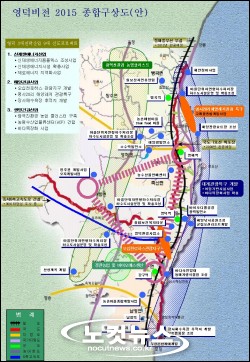 9일 영덕군(김병목 군수)이 발표한 종합계획에 따르면 오는 2015년까지 10년간 총 5조 7천255억원을 투자할 계획으로 인구 5만, 관광객 500만 시대를 목표로 재정자립도 15%에 달하는 사계절 해양 생태관광 중심지역으로 거듭난다는 구상이다.