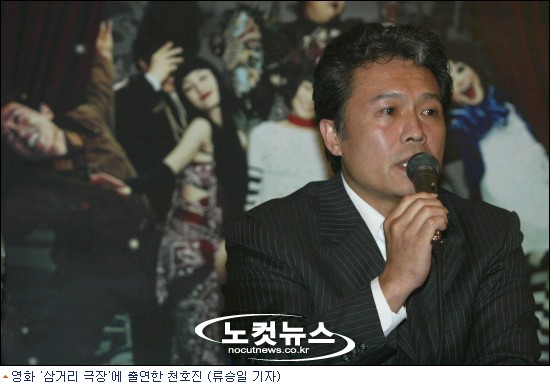 천호진은 11일 서울 CGV용산에서 열린 뮤지컬 영화 ''''삼거리 극장''''(감독 전계수) 시사회 후 기자간담회에서 ''''연기의 선배된 입장에서 새로운 시도를 했다는 점에서 후배들에게 면목이 선다''''며 뮤지컬 영화의 의미를 강조했다.