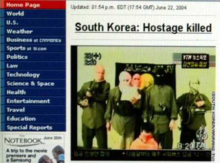 故 김선일씨(34)의 참수장면이 담겼다는 가짜 동영상이,인터넷상에 떠돌고 있어, 네티즌들의 분노를 사고 있다.