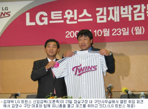 김재박(52) 전 현대 감독이 LG트윈스의 새 사령탑으로 공식 취임했다.