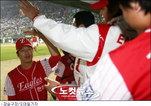 그러나 믿었던 배영수는 첫타자 김태균에게 좌전안타를 내주고, 수비실책에 이어 대타 조원우에게 적시타를 맞아 동점을 내줬다.