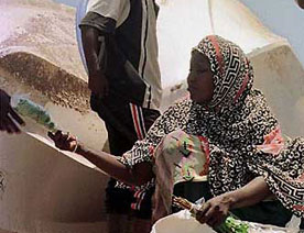 거리에서 카트를 파는 예멘여성