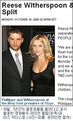 할리우드 톱스타 커플 리즈 위더스푼(30)-라이언 필립(32) 부부가 7년간의 결혼생활을 끝으로 결별에 합의했다.