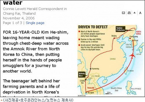 헤럴드지는 치앙라이 소년원의 한 회의실에서 탈북청소년 5명을 만나 한국인 통역의 도움을 받아가며 인터뷰를 하여 이들 일행의 대변인격인 혜심 양이 압록강을 건너 탈북한 후 다른 4명을 만나 어떻게 함께 태국까지 왔는지를 자세히 소개하고 있다.
