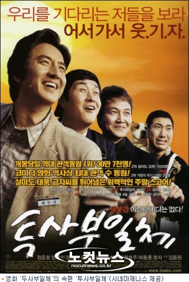 한편 지난 2001년 개봉한 ''''두사부일체''''는 서울 관객만 100만명을 넘어서는 흥행을 기록한 바 있으며 1편의 출연자 전원이 2편인 ''''투사부일체''''에 출연하는 기록도 남겼다.