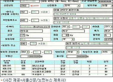 심지어 학비를 누구에게 의존하는지, 부모의 재산은 얼마나 되는지 등 극히 개인적이고 세밀한 정보까지 줄줄이 화면에 떴다. 특히 성적정보는 서울대 내부전산망이 아닌 외부 인터넷망에서도 조회가 되는 것으로 확인됐다.