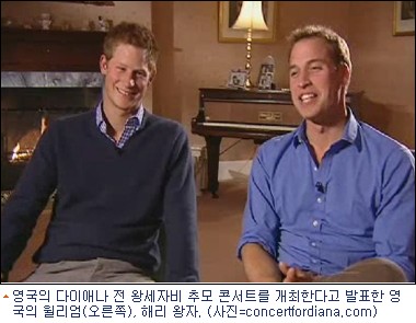 12일(현지시간) 영국 BBC 인터넷판은 윌리엄과 해리 왕자가 내년 7월 1일 웸블리 스타디움에서 엄마인 고 다이애나 왕세자비를 추모하는 콘서트를 열 계획이라고 보도했다.