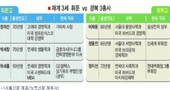 재계 ''''휘문 3총사 vs 경복 3총사''''