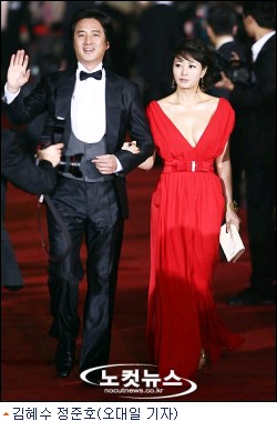 ◑…파격적인 의상으로 늘 시상식의 꽃으로 불렸던 김혜수가 이번 시상식에서도 과감한 붉은 드레스로 시선을 한몸에 받았다. 김혜수는 1부 진행을 위해 붉은 색 드레스를 입고 등장했는데 허벅지가 훤히 보이고 가슴라인이 선명한 섹시한 드레스로 참석자들에게 "역시 김혜수"라는 반응을 이끌어냈다. 김혜수는 이날 사회자로 식을 진행하다가 여우 주연상 수상자로 호명되자 "칭찬에 그치지 않고 다른의미의 책임감을 부여하신 것이라 생각한다"고 눈물섞인 소감을 했다.