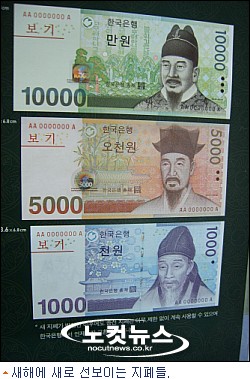 새해 초부터 10,000원권과 5,000원권, 1,000원권 등 세 가지 종류의 새로운 지폐가 선보인다.