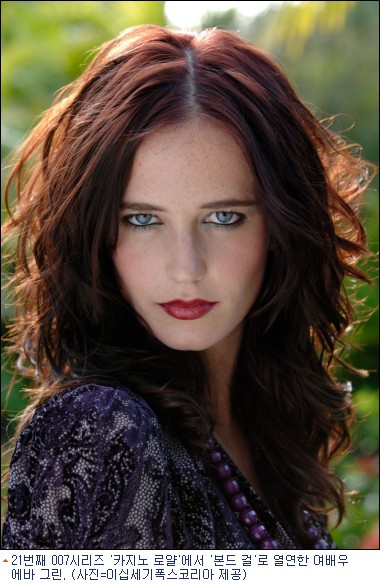 베르나르도 베르톨루치 감독의 ''몽상가들''과 할리우드 대작 ''킹덤 오브 헤븐'' 등에 출연한 에바 그린은 지난해 수많은 톱스타를 제치고 본드 걸에 최종 낙점돼 화제를 모았다.