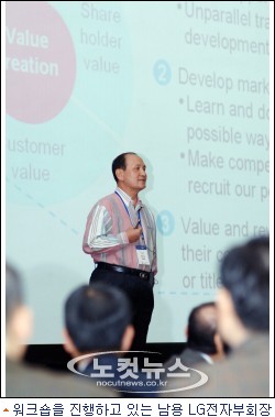 LG전자의 이번 워크숍은 최근 경기도 이천 LG인화원에서 구본무 LG그룹 회장 주재로 강유식 ㈜LG 부회장, 남용 LG전자 부회장, 김종은 유럽지역총괄 사장 등 LG 국내외 40여명의 최고경영자(CEO)가 참석한 가운데 열린 ''글로벌 CEO 전략회의''에 이어 열린 것이다.