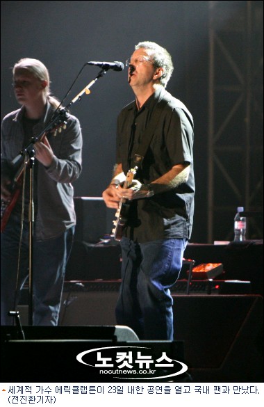 오후 8시 30분, 1만명의 박수로 무대에 오른 에릭 클랩튼은 낡은 청바지에 검은색 반소매 셔츠의 수수한 차림이었지만 2시간 동안 펼친 연주와 노래만은 평범하지 않았다.