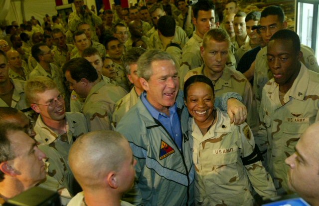 부시대통령의 미군 장병 군심 달래기(?) (바드다드=ap연합)