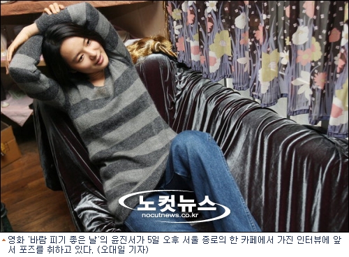 ▲"전혀. 영화는 어차피 픽션이고 또 젊고 어린 유부녀가 실제로 존재하잖아. 난 그런 사람을 연기하면 되니까. 시나리오가 참 재밌었다. 그리고 감독님이 매니저를 통해 시나리오 건네면서 ''윤진서 아니면 안 된다''고 했다더라.(웃음)"