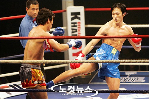 이수환이 18일 오후 서울 올림픽 공원 올림픽 홀에서 열린 K-1 파이팅 네트워크 칸 2007 챔피언쉽대회 4강에서 이진환을 맞아 멋진 발차를 선보이고 있다. 이날 경기에서 이수환이 결승에 올랐다.