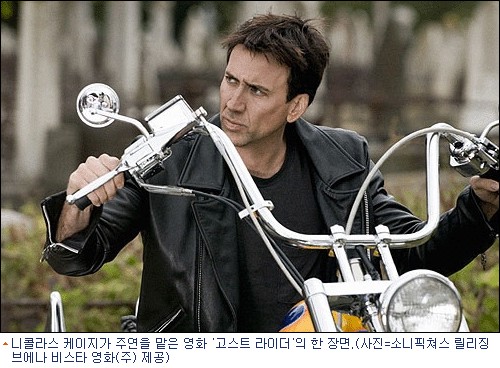 ''흥행배우'' 니콜라스 케이지를 전면에 내세운 액션 블록버스터 ''고스트 라이더''가 지난 주말 전미 3천 619개 스크린에서 개봉, 개봉 사흘만에 4천450만 달러가 넘는 엄청난 흥행수익과 함께 박스오피스 정상을 차지했다.
