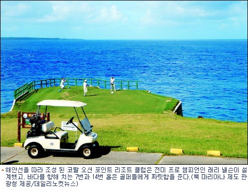 나이트 골프 색다른 재미 선사⊙코랄 오션 포인트 리조트 클럽(Coral Ocean Point Resort Club)/지난 88년 문을 연 코랄 오션 포인트 리조트 클럽은 사이판에서 가장 긴 골프 코스(7072야드 18홀 72파)로 유명하다.