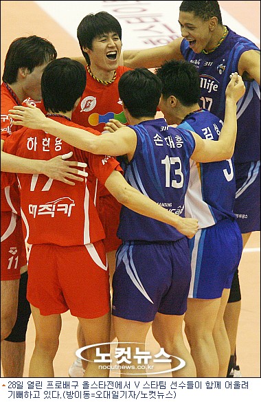 숨가쁘게 2006~2007 힐스테이트 V리그에서 치열한 경기를 펼치던 선수들이 잠시 승패를 잊고 함박웃음을 지었다. 너무 열심히 경기에 몰입해 몸을 날려 수비하는 선수들 탓에 순간 순간 소속팀 감독들은 가슴을 쓸어내리기도 했지만 선수들은 넘어졌다가 일어나도 얼굴엔 웃음뿐이었다.
