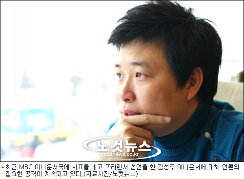 똑같은 상황이다. 최근 MBC 아나운서국에 적을 두고 있다가 프리랜서로 독립한 김성주 아나운서가 처한 입장과 비슷하다. 그의 입에서 어떤 이야기가 나와도 처단대상(?)이 되고 만 것이다. 그가 언론의 칼침으로부터 보호를 받을 수 있는 명제는 있을까?