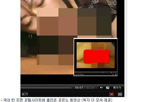 두 남녀가 뒤엉켜 낯뜨거운 정사를 벌이고 있는 포르노 동영상이 국내 한 유명 포털사이트에 그대로 공개돼 네티즌들의 분노를 샀다.