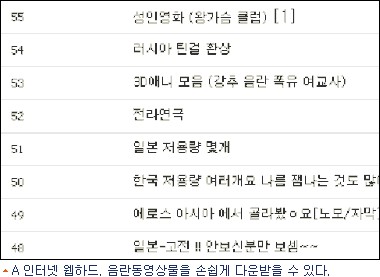 ''21C 판도라 상자''로 여겨지는 웹 하드와 UCC. 이제 성인동영상을 내려받을 수 있는 허브로 이용되고 있다.
