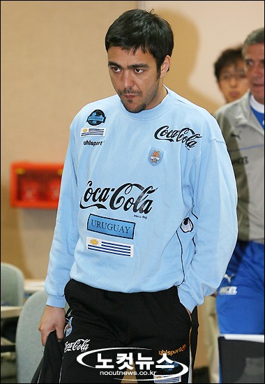 한국 대표팀과의 A매치 평가전을 앞두고 상암벌을 찾은 우루과이 축구대표팀의 레코바(인터 밀란)가 23일 오후 서울 상암월드컵경기장에서 열린 기자회견을 위해 입장하고 있다.