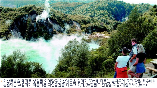 뉴질랜드는 화산의 나라다. 세계에서 활화산이 있는 나라 가운데 하나인 뉴질랜드는 도시마다 부글부글 끓어오르는 온천이 작게는 한두 개, 많게는 수십 개가 있다.