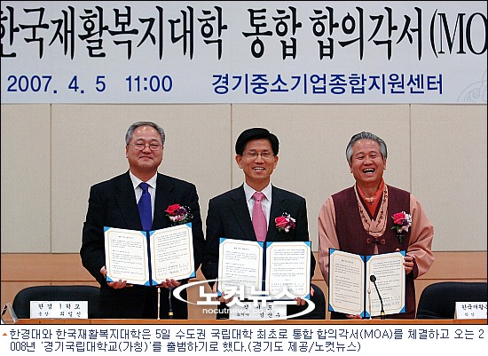 수도권 국립대학 최초로 한경대와 한국재활복지대학이 통합에 합의, 오는 2008년 ''경기국립대학교(가칭)''를 출범한다.
