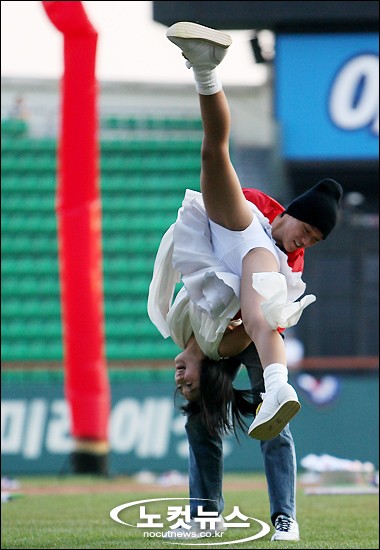 6일 오후 서울 잠실구장에서 열린 2007 프로야구 개막전 KIA타이거즈-LG트윈스의 경기에 앞서 치어리더와 비보이들이 화려한 개막 축하 행사를 펼치고 있다.