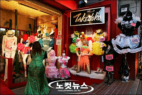 21일 오후 동경의 하라주쿠의 한 코스프레 샵에서 직원이 옷을 정리하고 있다.