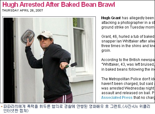 로맨틱 코미디의 제왕 휴 그랜트(46)가 파파라치에게 폭력을 휘두른 혐의로 경찰에 연행돼 취조를 받았다고 26일(현지시각) 미국 CNN등 주요 외신이 보도했다.