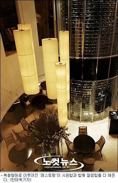 엘레베이터에서 내리자 여직원이 친절하게 맞이한다. 1:1 에스코트 서비스다. 직원의 안내로 ''씨네 드 쉐프''의 ''레스토랑''으로 들어섰다.
