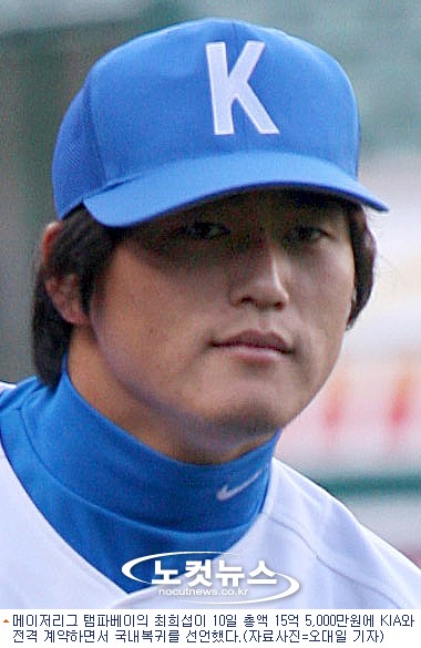 KIA는 10일 최희섭과 계약금 8억원, 연봉 3억5,000만원, 옵션 4억원 등 총 15억 5,000만원에 입단계약을 맺었다고 밝혔다. 최희섭은 올시즌에 한해 지난 1999년 이후 해외 진출선수에 대해 조건없는 국내 복귀를 허락한 한국야구위원회(KBO) 규정에 따라 시즌 출전이 가능하다. KIA는 지난 3월 29일 해외파 복귀 선수 우선지명권을 행사해 광주일고 출신 최희섭을 지명한 바 있다.