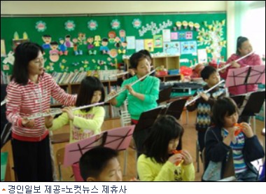 3학년생이 없는 이 학교의 1∼2학년 5명에게 오카리나와 하모니카 연주를, 4학년 3명에게는 오카리나를, 5∼6학년 10명에겐 플루트 연주를 교육하고 있다.