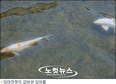 "4년 전(2003년 1월)에는 알을 많이 나은 덕분에 새끼잉어가 엄청나게 많이 불어나 시민들에게 분양까지 할 정도였는데, 요새는 씨가 말라 간다 할 만큼 치어는 보기가 힘들어졌지요."