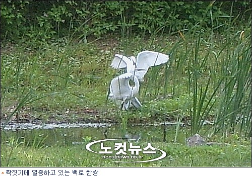 그것은 대단한 행운이었다. 짝짓기 철에 들어간 것으로 보이는 백로 한 쌍이 위와 아래로 그림을 만들며 ''사랑의 유희''를 즐기고 있었던 것이다.