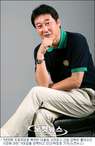 7년만의 귀환이다. 2000년 5월, LG와 감독 재계약에 실패하며 프로농구를 떠난 이충희 감독(48)이 돌아왔다. 이번에는 오리온스 지휘봉을 잡았다. 7년만의 복귀인 만큼 부담도 크다. 한편으로는 두렵기도 하단다. 그러나 방송해설가로, 고려대와 동국대 감독으로 활약하면서 프로 복귀를 착실히 준비해왔다는 이충희 감독은 준비한 시간에 비례해 자신감도 쌓였다며 설렘을 감추지 않았다.