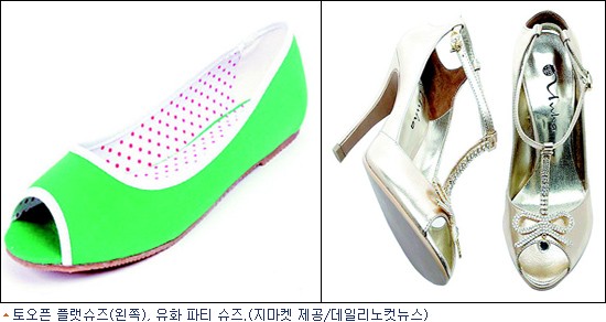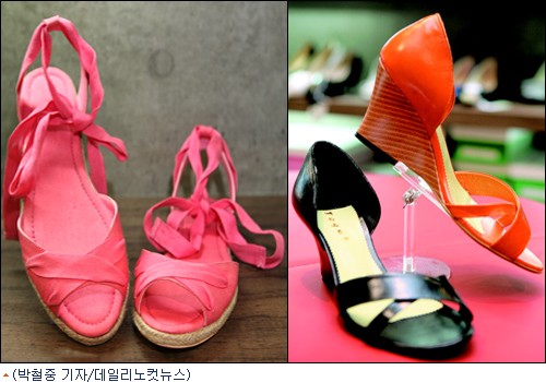 또한 여성스러움을 강조한 리본 오브제가 부착된 구두, 구두와 굽의 색을 보색으로 처리해 경쾌함을 살린 멀티컬러 구두도 호조다.
