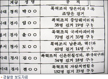 경찰이 조직폭력배를 검거하고도 구체적인 사실을 밖으로 알리지는 말아달라고 요구하고 나섰다. 다른 폭력조직원들의 보복이 두려워서다.