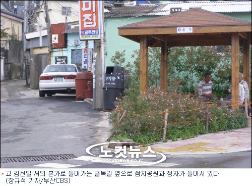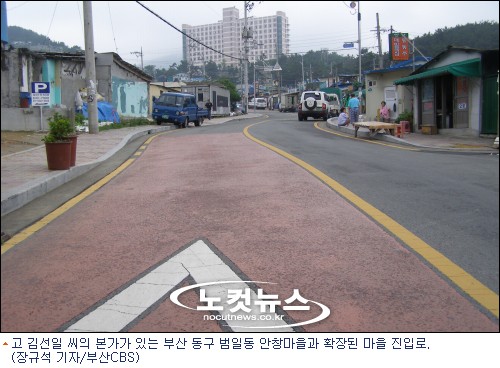 부산 동구청은 최근 국가 지원금 32억 원으로 동구 범일 6동 산 62번지 이른바 안창마을 진입로 415m 구간을 12m로 확장하는 공사를 마쳤다고 밝혔다. 또 김씨의 본가로 들어가는 골목길에는 조그만 쌈지공원과 정자가 들어서 주민들에게 휴식공간을 제공하고 있다.
