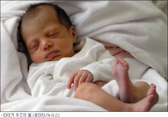 ''골프 황제'' 타이거 우즈(31)가 태어난 지 1주일 된 딸 샘 알렉시스 우즈의 사진을 공개했다.