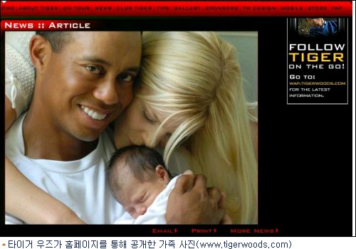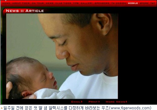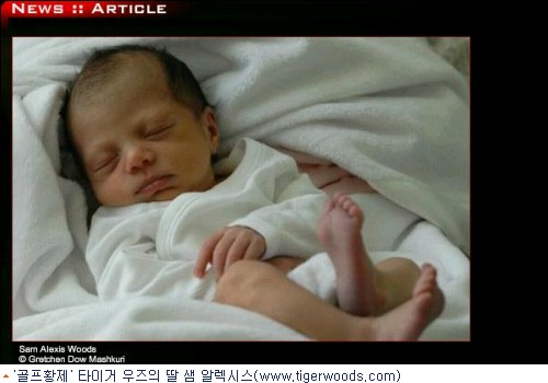 평소 사생활 노출을 꺼려왔던 우즈가 26일 자신의 인터넷 홈페이지(www.tigerwoods.com)를 통해 지난 19일에 태어난 첫 딸 샘 알렉시스 우즈의 사진을 깜짝 공개했다. 홈페이지를 통해 아빠가 된 사실을 팬들에게 알렸던 우즈는 이날 자신과 아내 엘린 노르데그렌, 샘 알렉시스가 함께 한 사진을 포함해 샘 알렉시스의 사진 4장을 팬들에게 소개했다.