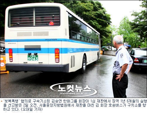 김 회장과 같이 구속 기소된 한화 경호과장 진 모씨에게는 징역 10월에 집행유예 2년을 선고했다. [BestNocut_R]