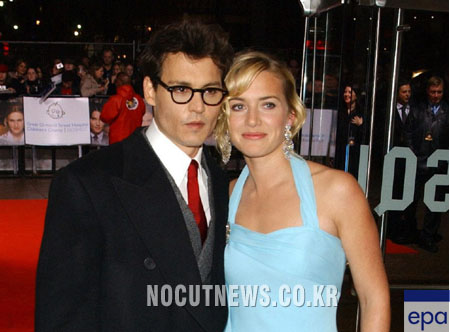 '파인딩 네버랜드' 시사회에서 케이트 윈슬렛(오른쪽)과 포즈를 취하고 있는 조니 뎁