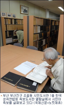연합회가 지금까지 모은 한국의 성씨는 모두 122개로, 이에 따른 족보만 6500여 권에 달한다. 족보가 없거나 구하기 힘든 시민들은 도서관 내 연합회를 찾아 족보를 살펴보고 공부할 수 있다. 현재 연합회 사무실에는 50여 개의 열람석이 준비돼 있지만 소속 회원을 제외한 일반인의 하루 평균 방문객은 2~3명 정도에 그치고 있다.[BestNocut_R]